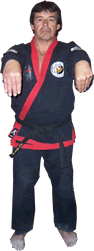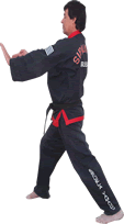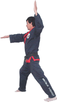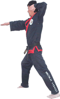 SU-DO-KONG-KIOK Mano derecha a la altura de la rodilla. El tronco a 45º, vista al piso